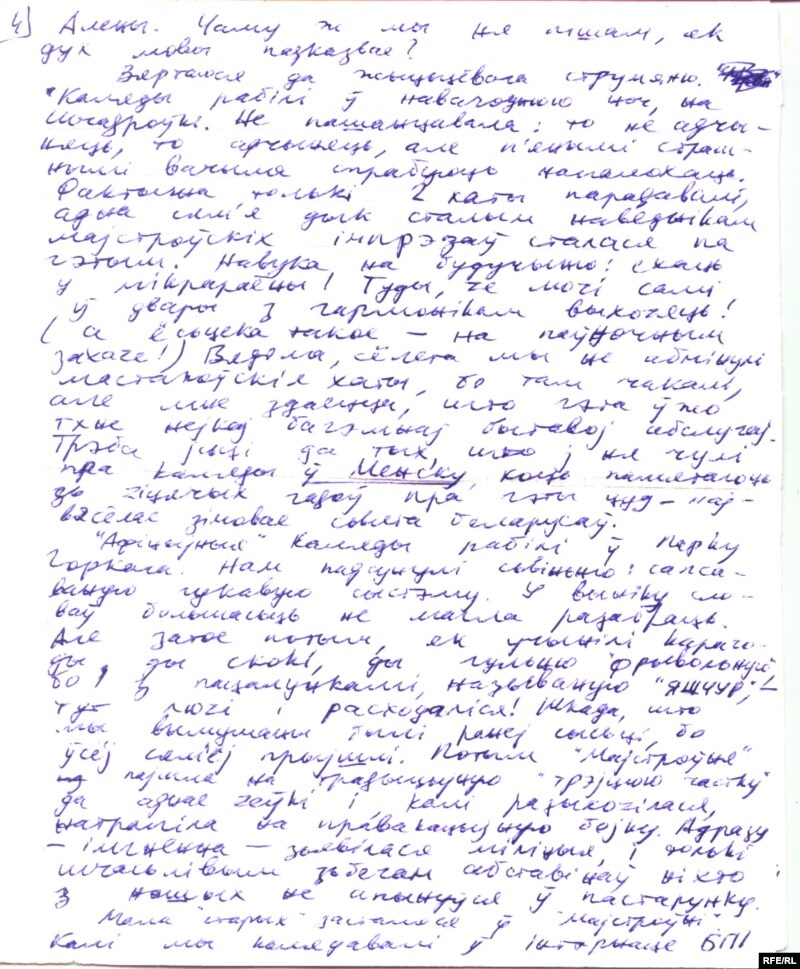 У Вінцука ліст на дзесяць аркушаў. І палова – гэта выпраўленьне моўных памылак, як трэба пісаць і скланяць. А астатняе -- ён апісвае тыя майстроўскія падзеі, якія адбываліся пасьля майго сыходу ў войска. І зь лістоў вынікае, што вельмі складана было праводзіць гэтую Майстроўню. Увогуле дзіўна, як яна там існавала, у Палацы прафсаюзаў, як яе не прыкрылі.