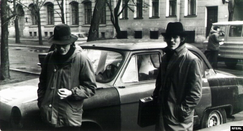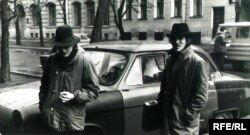 “Два польскіх шпіёны” з мастацкай вучэльні: Міхал Анемпадыстаў і Аляксей Дзьмітрыеў. Менск, пачатак 1980-х.