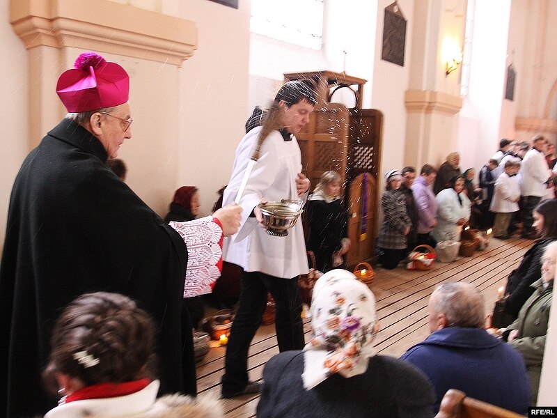 У Вялікую суботу адбываецца асьвячэньне страваў на велікодны стол. Мітрапаліт Тадэвуш Кандрусевіч наведаў шматлікія парафіі. Фотарэпартаж з наведваньня парафіі Маці Божай Ружанцовай у в. Ракаў.