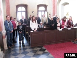 Праскія беларусы сабраліся на велікодную службу і асьвячэньне пасхаў у царкве сьвятых Кузьмы і Дзям’яна, заснаванай у 928 годзе. Службу адслужыў уніяцкі сьвятар айцец Андрэй Абламейка.