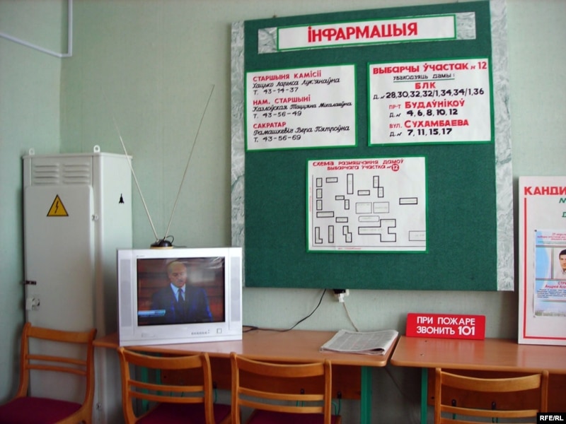 На ўчастку № 12 у Горадні, які месьціцца ў каледжы бытавога абслугоўваньня, сябры камісіі бавілі час, назіраючы па тэлевізіі выступ Аляксандра Лукашэнкі ў Палаце прадстаўнікоў.