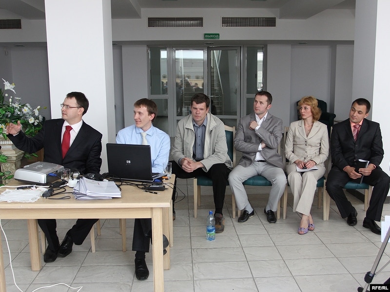 Алесь Міхалевіч і яго каманда: Алесь Лукашэвіч, Кастусь Лукашоў, Ігар Драко, Данута Чыгір, Віктар Яўмененка.