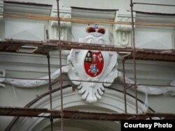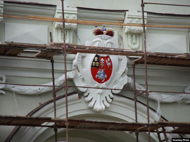 Герб, які ўсталяваны на браме, зьяўляецца апошняй вэрсіяй герба сям'і Сапегаў (1858-1859 гг.).