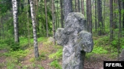 Вёска Заазер’е — паселішча немалое. Некалькі вялікіх вуліцаў, якія патанаюць у буйнай зеляніне. Асноўнае насельніцтва — пэнсіянэры. Пра лясныя крыжы я разгаварыўся з адной прыветнай спадарыняй, якая азвалася бабай Нюшай.