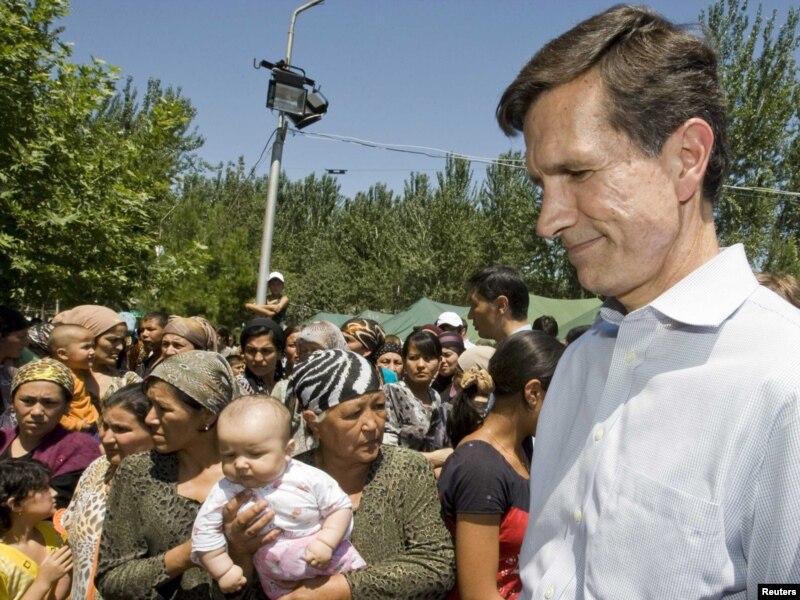 Сёньня лягеры ўцекачоў у Андыжанскай вобласьці наведаў Робэрт Блэйк, памочнік дзяржсакратара ЗША ў справах Паўднёвай і Цэнтральнай Азіі. Ён заявіў, што вельмі важна правесьці расьсьледаваньне міжэтнічнага канфлікту ў паўднёвым Кіргізстане.