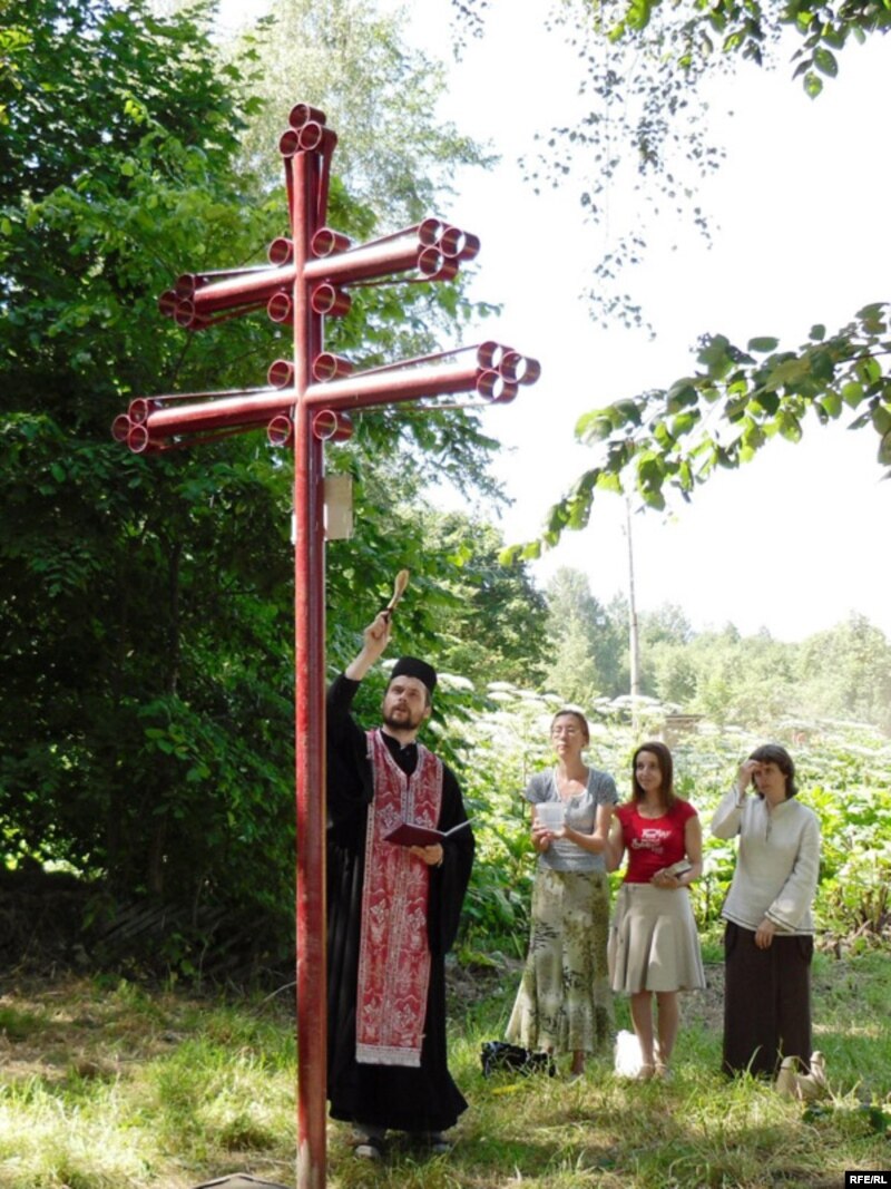 Грэка-каталіцкі сьвятар айцец Зьміцер, які адмыслова прыехаў дзеля гэтага зь Віцебску, асьвяціў крыж і памаліўся за тых, хто загінуў у змаганьні за сваю волю: