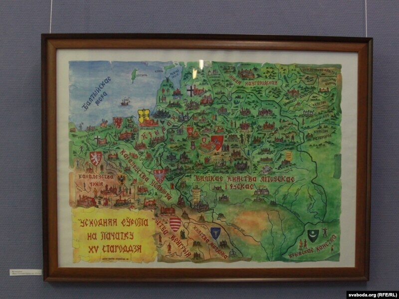 На выставе — шмат партрэтаў: Вітаўта Вялікага, яго дачкі Алены, Соф'і Гальшанскай, польскага караля Ягайлы. Прадстаўлены батальны жывапіс — сцэны самой гістарычнай бітвы пад Грунвальдам. Шмат выяваў помнікаў архітэктуры таго часу, замкаў Вялікага Княства Літоўскага. Ёсьць унікальнае палатно Яна Мяльніцкага "Мапа Ўсходняй Эўропы" пачатку XV стагодзьдзя".