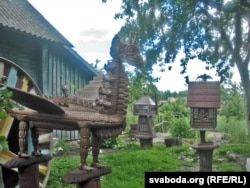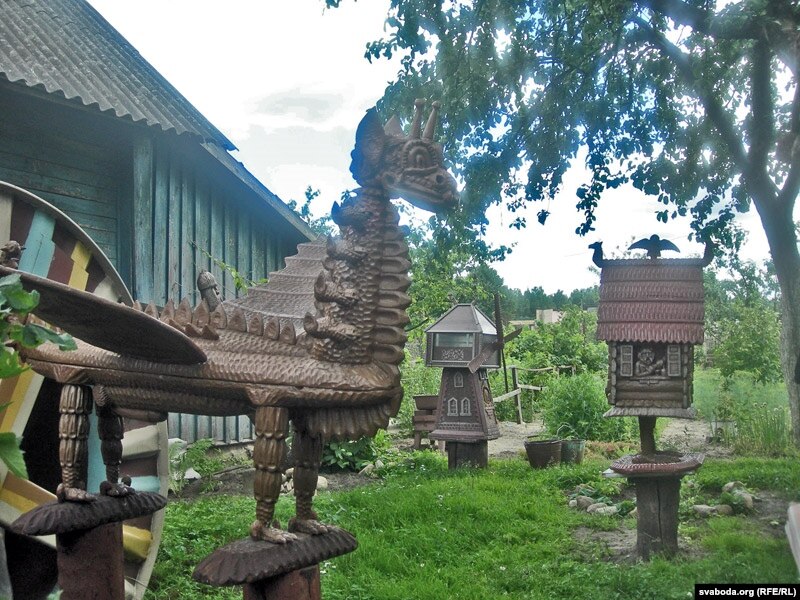 Але галоўны сюрпрыз мяне чакаў наперадзе. Блукаючы па Старых Дарогах, Віталь завёў мяне на вуліцу Астроўскага. Дзе на адным з дамоў красуецца вялізная шыльда «Лінія Лізуры». Пра народнага майстра, рэзчыка па дрэве Ігара Лізуру я чуў неаднойчы. І ад Уладзіміра Арлова, і ад Глеба Лабадзенкі, і ад шмат каго яшчэ. Але іншая справа — пабачыць тую «Лінію» на свае вочы. Фантазія, гумар і залатыя рукі гаспадара сядзібы зрабілі сапраўдны цуд. На «Лініі Лізуры» вы імгненна ператвараецеся ў дзіця, якое ня можа адарвацца ад сузіраньня незвычайных цацак. Тут і пэрсанажы беларускай міталёгіі,