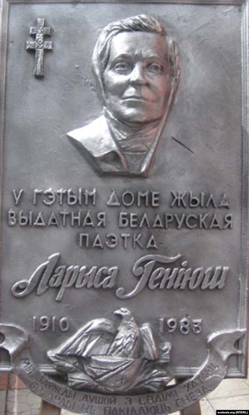 Як вядома, іншую шыльду, прысьвечаную стагодзьдзю Ларысы Геніюш, раней зьнялі ў Ваўкавыску і даставілі ў РАУС. Яе павесілі мясцовыя краязнаўцы на доме, у якім паэтка нарадзілася.