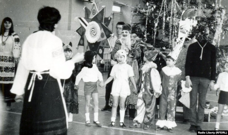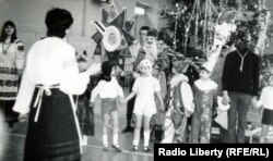 Майстроўскія Каляды ў беларускай клясе менскай СШ № 108, 29 сьнежня 1983 году. Марына першая зьлева.