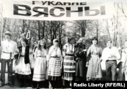 Марына: “Паступіла я і паехалі на бульбу. І там пазнаёмілася з Наткай Лазоўскай і з Аленкай Клімовіч. Натка для мяне трошкі дзіўная была. Яна ўжо была ў Майстроўні і нешта спрабавала сьпяваць па-беларуску. І мова ў яе беларуская была не такая, як у вёсцы. І для мяне, калі Натка мяне прывяла на Майстроўню, спачатку мяне, а потым і Аленку, і для мяне было – О, гэта людзі, якія ведаюць жывога Караткевіча!