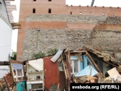 Апошні, напаўразбураны дом — з тых, якія стаялі з двух бакоў замку.