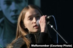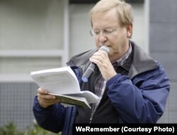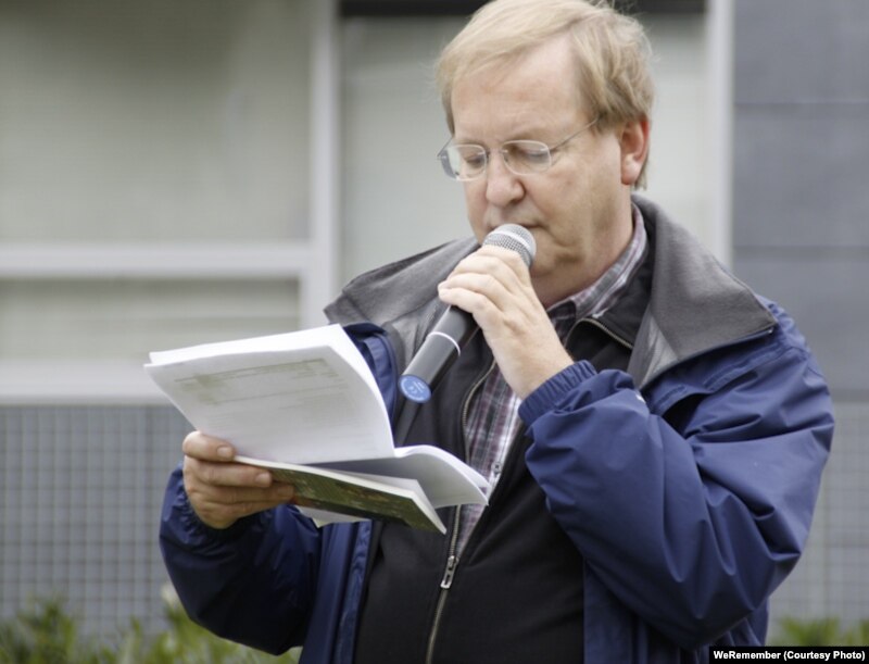 Удзельнікі цырымоніі ўшануюць хвілінай маўчаньня памяць журналіста Алега Бябеніна.