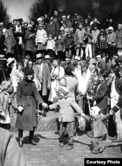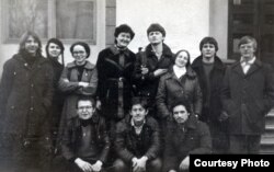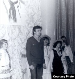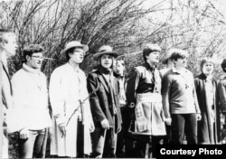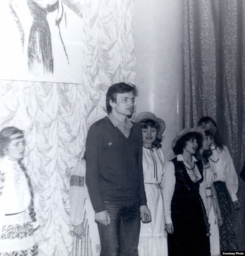 Пасьля сьпевак на прыступках Палацу прафсаюзаў. Красавік 1983 году. Стаяць Яўген Валасевіч, Лада Шчасная, Натальля Лазоўская, Віялета Кавалёва, Сяргей Шупа, Ларыса Сімаковіч, Янка Медзьвядзёў, Гэнік Лойка. Сядзяць Вінцук Вячорка, Сяргей Мурашка, Міхась Талочка.
