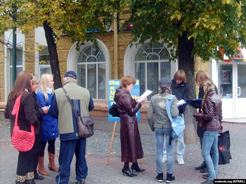 Зьбіральнік подпісаў Сяргей Сьцепанец: «Гарвыканкам забараніў зьбіраць подпісы ў тых месцах, дзе найбольш людзей, дзе праходзяць людзкія патокі — блізу прыпынкаў, рынкаў, гандлёвых прадпрыемстваў, ля ўваходу ў паркі. Мы не павінны падыходзіць да іх бліжэй, чым на 50 мэтраў».