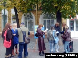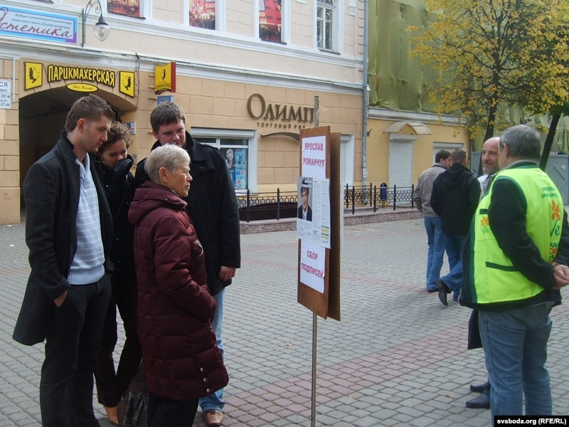 На пешаходнай Ленінскай вуліцы ля крамы з парфумай разьмясьціла свой пікет ініцыятыўная група Яраслава Раманчука. Яе кіраўнік Уладзімер Шанцаў дзеліцца сваімі назіраньнямі пасьля чатырохгадзіннага збору подпісаў: