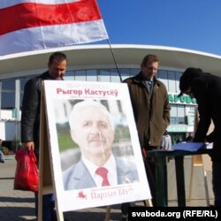 Збор подпісаў за Рыгора Кастусёва ля Камароўскай плошчы,
