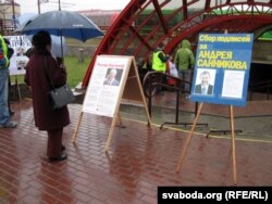 У Андрэя Саньнікава інфармацыя таксама зьмешчана па-расейску, але зьбіральнікі подпісаў гавораць на той мове, на якой да іх зьвяртаюцца. Кажуць, што запісваюць пераважна па-расейску, але калі людзі просяць па-беларуску, то так і робяць.