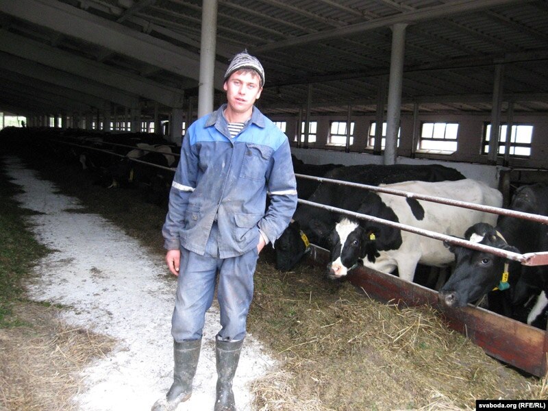 На ўскраіне вёскі адзіная тут фэрма на паўтысячы кароў. Дояць тут па 8 тысяч літраў малака ад каровы і, кажуць, фэрма лічыцца ці не найлепшай на Гарадзеншчыне. Зрэшты, 22-гадовы даглядчык Дзіма Наўмец, якога адзінага знайшоў у перапынку паміж раздачай кармоў, ня надта гэта адчувае.