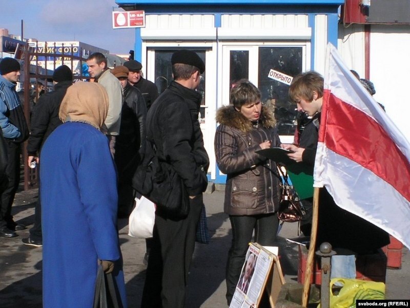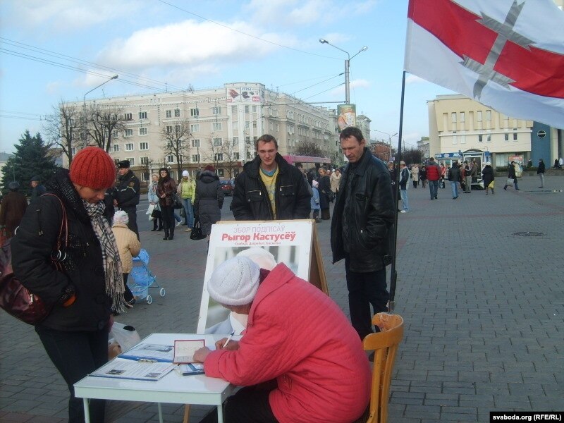 «У мінулыя выходныя на кірмашы побач стаялі зьбіральнікі подпісаў за Міхалевіча, за Кастусёва і за Някляева. Мінакі бачылі тры пікеты, але падыходзілі адразу да «кастусёўцаў», бы там быў такі вялікі бел-чырвона-белы сьцяг. Адназначна кожны, хто хацеў падпісацца за апазыцыйнага кандыдата, кіраваўся адразу туды, а потым ужо заўважаў: «Ага, дык тут жа можна падпісацца і за кагосьці яшчэ!»
