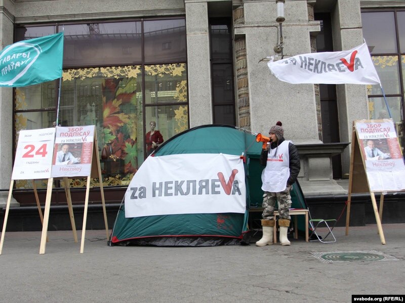 Усю кампанію збору подпісаў пад сваім сьцягам правяла ў Магілёве ініцыятыўная група Някляева. Белы сьцяг з надпісам «За Някляева» — адзіны, які бачылі выбарцы ў спальных раёнах Магілёва: