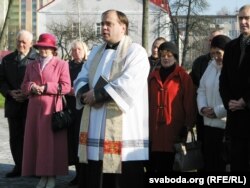 "Актывістам Таварыства беларускай мовы, а таксама Таварыству польскай культуры Лідчыны ўдалося дамагчыся ад мясцовай улады, каб чыноўнікі дазволілі ўшанаваць памяць пра ксяндза на месцы яго расстрэлу. Напярэдадні быў усталяваны камень, на якім зроблены надпіс па-беларуску і па-польску. І вось толькі што гэты помнік асьвяціў пробашч лідзкага Фарнага касьцёла Ўладзімер Гуляй. Жыхары Ліды, якіх тут сабралася больш за 30 чалавек, прачыталі малітву. Пасьля гэта да сабраных зьвярнуліся кіраўнік Таварыства польскай культуры Аляксандар Колышка, і прадстаўнік ТБМ Станіслаў Суднік".