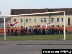 На стадыёне і вакол яго шмат міліцыянтаў. Улады прыгналі сюды нават вадамёт, як кажуць удзельнікі мітынгу пра пажарную аўтамашыну.