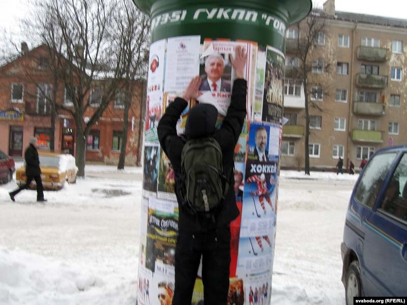 Толькі сёньня ў Горадні пачалі расклейваць плякаты кандыдата ў прэзыдэнты Рыгора Кастусёва