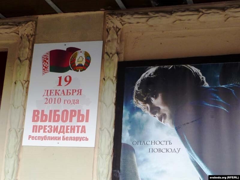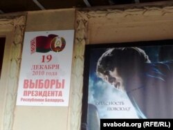 датай выбараў 19 сьнежня. На афіцыйных установах сустракаюцца пераважна расейскамоўныя. І ўся інфармацыя на выбарчую тэматыку ў дзяржаўных газэтах — выключна па-расейску.