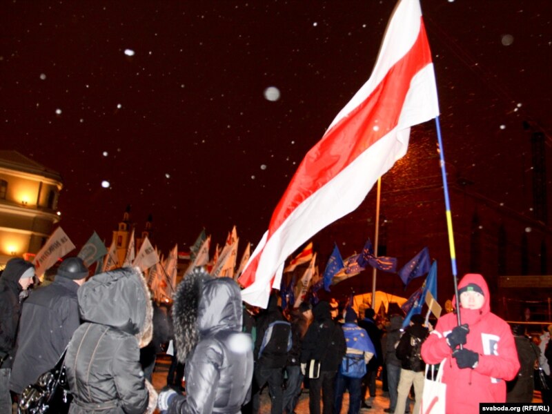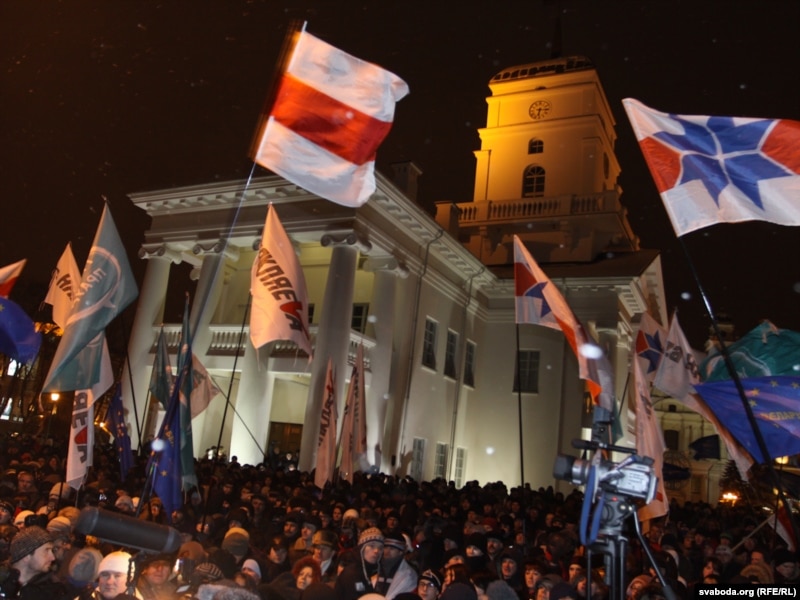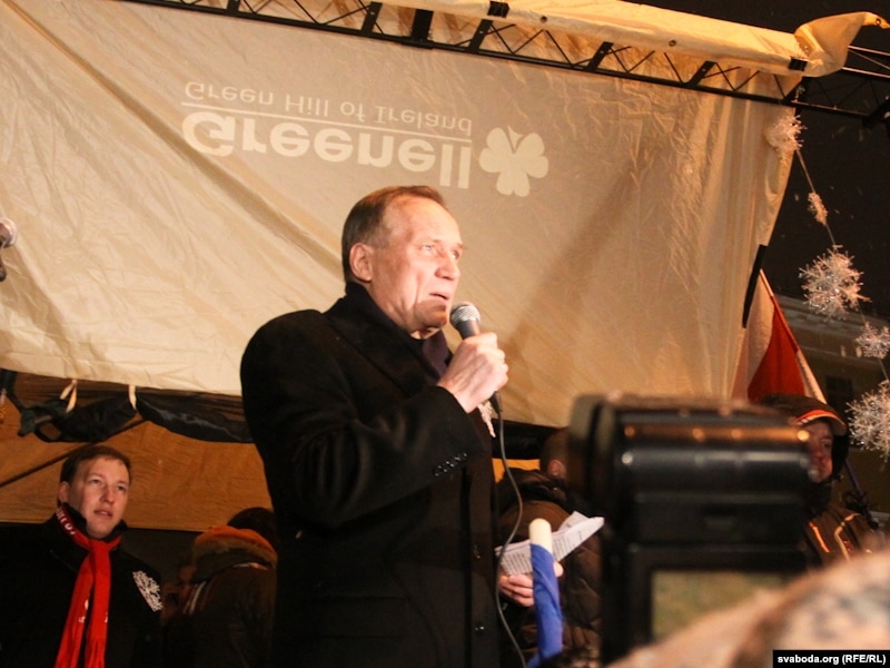 18:20 На плошчы каля тысячы чалавек. Сярод іх кандыдат у прэзыдэнты Андрэй саньнікаў, старшыня партыі «Справядлівы сьвет» Сяргей Калякін. Кіраўнік ініцыятыўнай групы Ўладзімера Някляева Андрэй Дзьмітрыеў заклікаў прысутных прыходзіць на Кастрычніцкую плошчу ўвечары 19 сьнежня.