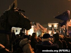 19:15 Нягледзячы на заклік застацца на дыскатэку, людзі пачалі пакідаць плошчу, бо ўсе вельмі зьмерзьлі.
