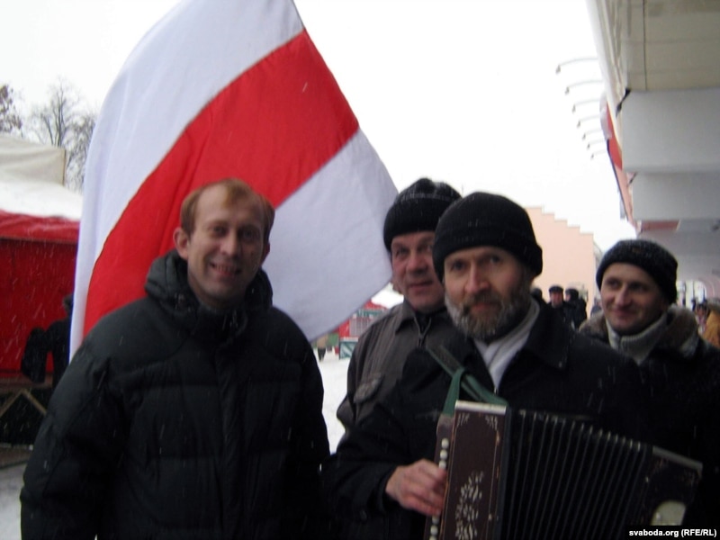 Гомельскі бард Андрусь Мельнікаў адкапаў недзе стары гармонік і выводзіў рэвалюцыйную мэлёдыю: “Віхуры варожыя веюць над намі…”.