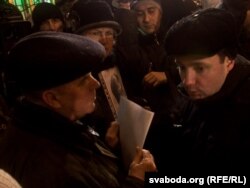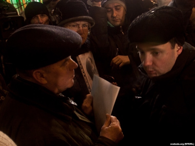 18:30 Прыйшло некалькі знаёмых і сяброў палітзьняволеных з партрэтамі і сьвечкамі. Супрацоўнікі КДБ адабралі партрэты. Некалькі разоў праз гукаўзмацняльнік міліцыянты папярэдзілі прысутных пра тое, што акцыя не санкцыянаваная, і пра адказнасьць за ўдзел у акцыі.
