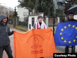 Гэта акцыя – першая з шэрагу заплянаваных Міжнародным саюзам сацыялістычнай моладзі ECOSY. Кампанія будзе праводзіцца каля беларускіх амбасадаў па ўсёй Эўропе.