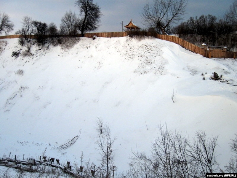 Нарэшце накіроўваемся са спадаром Казарэзавым да старажытнага замчышча. Да юбілею ўлады падмацавалі драўляныя платы на земляным муры, зрабілі, дзе трэба, беларускамоўныя мэмарыяльныя дошкі. Але славутыя мясьціны застаюцца пустэльнымі…