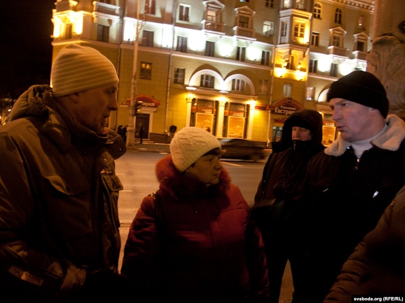 Прыйшла маці аднаго зь вязьняў Плошчы Алена Ліхавід. Ейны сын утрымліваецца ў турме ў Жодзіне. Алену хацелі затрымаць, але людзі адбілі яе ў міліцыянтаў. Міліцыянты паводзяць сябе груба і папярэджваюць, што акцыя несанкцыянаваная.