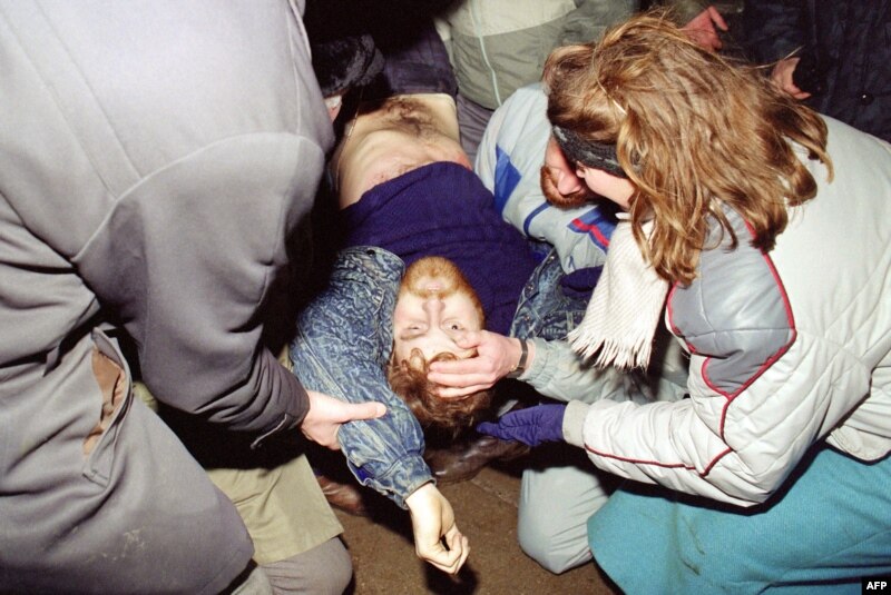 Тую ноч я правёў у будынку разам з абаронцамі парлямэнту, а на наступны дзень нас прывялі ў палац, дзе стаялі труны зь целамі забітых. Потым была цырымонія пахаваньня…