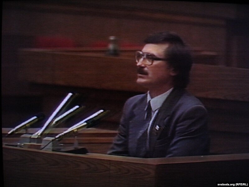 “Пользуясь случаем, я хотел бы сказать несколько слов, обращаясь к жителям Литвы-белорусам и к солдатам-белорусам, которые, возможно, тут находятся. Шаноўныя землякі, тое, што цяпер адбываецца ў Вільнюсе, тое, што цяпер адбываецца ў Літве – гэта, можа быць, толькі пачатак той крывавай драмы, якая нам наканаваная. Цяпер спрачаюцца, калі ж пачалася перабудова. Безумоўна, што дакладна фініш перабудовы можна вызначыць – 13 студзеня 1991 года, тут. Давайце праявім салідарнасьць з народам Літвы, у якога адзінае з намі памкненьне – гэта памкненьне да свабоды, гэта памкненьне да сувэрэнітэту.