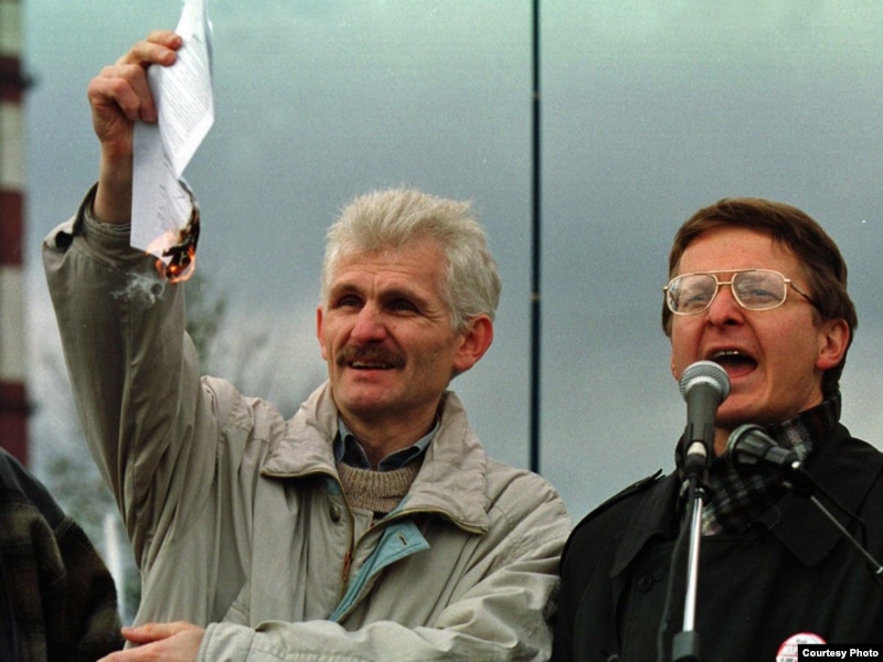 Франак Вячорка: "Першыя мітынгі, якія ў мяне візуальна ў галаве паўстаюць, гэта 96-ы год, калі пераварочвалі машыны. Я вось якраз стаяў перад гэтымі машынамі, літаральна за 20 мэтраў. Мне тады было 8 гадоў. Ізноў жа, я ішоў не з бацькамі, а зь сябрамі. І ў той жа год ці наступны — мітынг на вуліцы Камуністычнай, там, дзе цяпер знаходзіцца АНТ і СТВ. Тады пачалі пускаць газ, і я стаяў на ўзгорку з боку праспэкту, за ўсім гэтым назіраў, як падаюць людзі. Людзі проста ня бачылі перад сабой, уразаліся ў дрэвы, валяліся на асфальце. Міліцыянты іх забіралі ў машыны, білі дубінкамі. Я стаяў зусім адзін, за ўсім гэтым назіраў і думаў пра адно, пра свайго бацьку — што зь ім, бо ён быў у самым цэнтры. Тады атачылі будынак тэлебачаньня, крычалі "Луку на муку, слова Пазьняку!" Тады я, безумоўна, мала што разумеў, але калі крычалі, я крычаў з усімі, калі сьпявалі беларускія песьні, я сьпяваў з усімі, калі выходзілі на плошчу, я быў у першых шэрагах".
