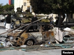 У выніку авіяўдару па бронетэхніцы паўстанцаў, якія вялі бой з войскамі Муамара Кадафі, загінулі найменш два чалавекі.