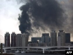 Цунамі, якое прыйшло за штуршкамі, змыла з узьбярэжжа машыны. У Токіо гараць некалькі будынкаў, у тым ліку нафтаперапрацоўчы завод.