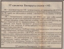 Але той рэфэрэндум меў яшчэ адну асаблівасьць, якая істотна адрозьнівала яго ад плебісцытаў, што праходзяць у дэмакратычных дзяржавах. Гэта – немагчымасьць апанэнтаў улады (у тым выпадку – прыхільнікаў незалежнасьці Беларусі) давесьці да насельніцтва свой пункт погляду.