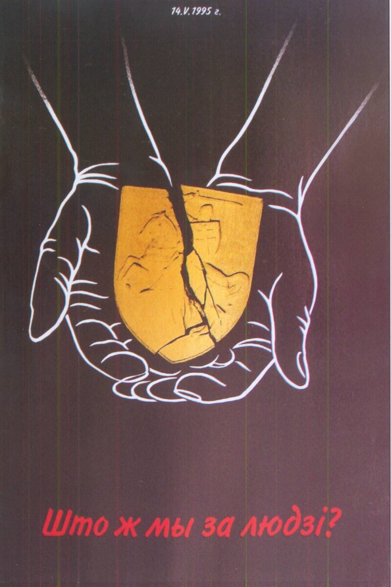 Аляксей Марачкін: “Перш за ўсё тры плякаты Ўладзімера Крукоўскага. Памятаеш яго клясычны твор “Што ж мы за людзі?”. Далоні, якія трымаюць разьбіты ўшчэнт герб Пагоня... Другі плякат мае назву “Свабоду палітвязьням!”. І трэці не дапушчаны на выставу плякат прысьвечаны Беларускай Народнай Рэспубліцы. Ня трапілі на выставу таксама карціна Віктара Мікіты і мая “Сьцяна” (дарэчы, на выставу ў 1997 годзе яна "прайшла"). І я разумею, чаму сёньня ўлады такія насьцярожаныя: за кратамі сядзяць знакавыя людзі – палітыкі, былыя кандыдаты на прэзыдэнта. Ня трапіў у экспазыцыю і яшчэ адзін мой новы твор – “Здані, або Пераможцы”. "Пагоня" даўно ўжо адчувае на сабе ўціск з боку ўладаў, а таксама з боку кіраўніцтва Саюзу мастакоў, хоць да яго я стаўлюся пазытыўна. Чаму ж адбываюцца гэтыя скандальныя забароны? Гэта сур’ёзная размова. І тут я мушу сказаць некалькі словаў пра кіраўнікоў саюзу, якія ўжо другі тэрмін пры ўладзе знаходзяцца – і старшыня, і намесьнікі”.