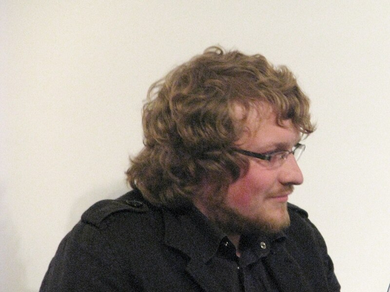 Сяргея Календу зьмяніў на сцэне Зьміцер Вішнёў - мастак, выдавец і пісьменьнік, заснавальнік выдавецтва “Галіяфы”. Ён пазнаёміў слухачоў з фрагмэнтамі раману “Замак пабудаваны з крапівы”, які пераклала на нямецкую мову Марціна Якабсан.