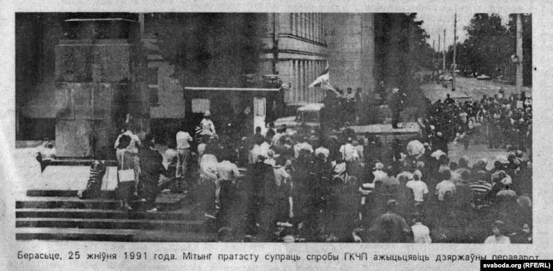 Вось у мяне і ў нас у берасьцейскім фронтаўскім коле менавіта тады было адчуваньне: гэта пералом, вось яна, незалежнасьць. Радыкальна зьмянілася ўсё, што было раней. Такі этапны пэрыяд, водападзел. У нас пасьля таго мітынгу была вельмі цікавая сытуацыя. Пасьля таго мітынгу мы стварылі праз фронт такую структуру аховы будынкаў абкаму партыі, партархіву. У нас так званае царскае сяло — за помнікам Леніну. І ўлады тады былі страшэнна напалоханыя... Чаму ахову стварылі — бо мы баяліся, што будуць паліць архівы, нейкія дакумэнты выносіць, хаваць. Адчуваньне, што на нейкі момант улада разгубілася, што гэта пералом ня проста там недзе ў Менску ці ў Маскве, а ў нас у рэгіёне, гэта было адназначна ў Берасьці бачна».