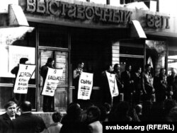 Першая масавая публічная акцыя ў Берасьці з нагоды ўгодкаў Чарнобыльскай трагедыі. 1990 год. (архіў Я.Бяласіна)