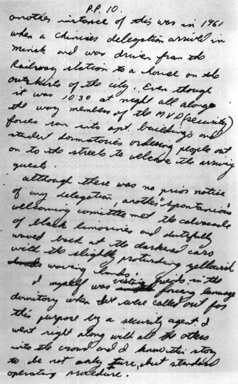 Уся гістарычная гісторыя зьмясьцілася на дванаццаці старонках, якія ахопліваюць падзеі ад прыезду ў Маскву ў кастрычніку 1959-га і да сакавіка 1962-га. Апошнія тры месяцы перад ад’ездам у Амэрыку запісы не рабіліся – але большасьць старонак запоўненая і прысьвечаная падзеям, якія адбываюцца ў Менску.