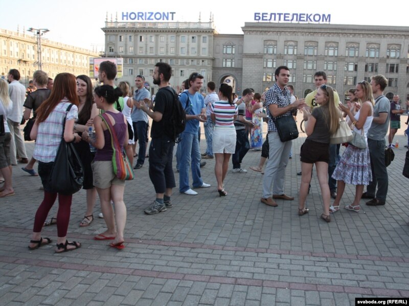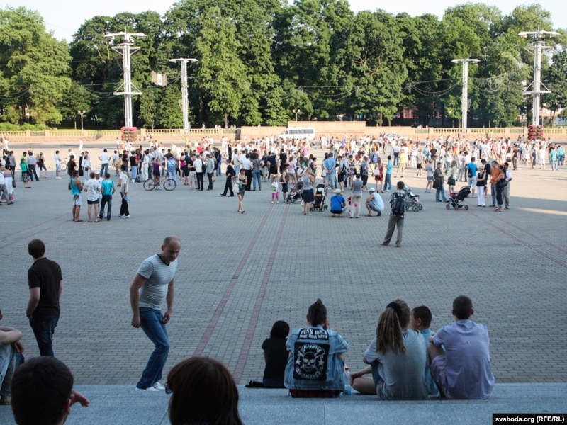 Больш як 200 чалавек прыйшлі ўвечары на Кастрычніцкую плошчу Менску на заклік арганізатараў акцыі «Рэвалюцыя праз сацыяльную сетку». Моладзь слухала сьпевы пад гітару і сама спрабавала сьпяваць. Супрацоўнікі спэцслужбаў пры ўдзеле начальніка менскай міліцыі Ігара Яўсеева пільна сачылі за хадою падзеі. Акцыя абышлася без затрыманьняў.