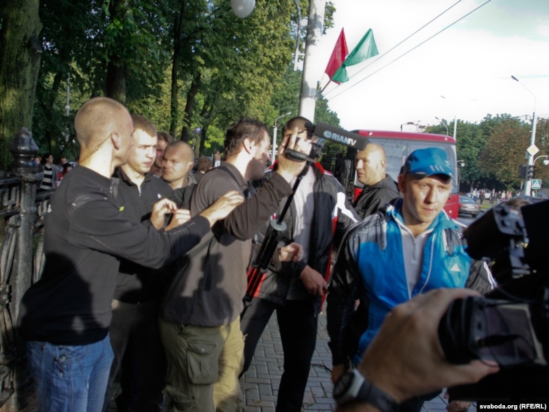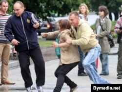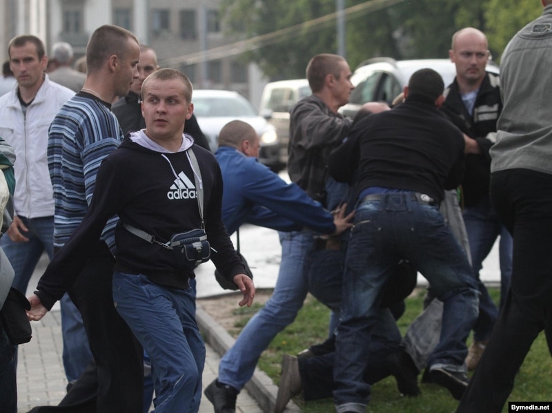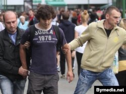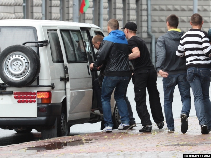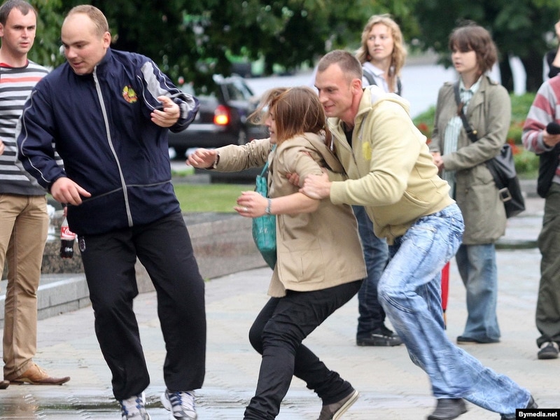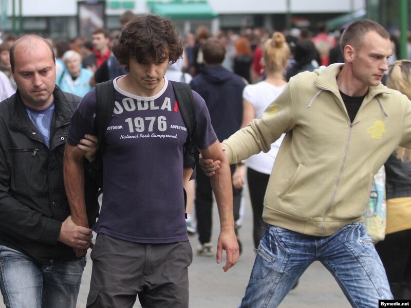 19:10 Пачаліся затрыманьні, пад'ехаў міліцэйскі аўтобус, людзі ў цывільным выбарачна хапаюць людзейі і груба запіхваюць у аўтобус. На вачах карэспандэнта Радыё Свабода затрымалі каля 10 чалавек каля пераходу да цырку.