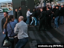 Каля загародак зьбіраліся людзі. Было бачна, што некаторыя групы тут зусім не выпадкова. Але яны былі вельмі разгубленыя і ня ведалі, што рабіць. Ніводнага воплеску, ніводнага гудку аўтамабіля пакуль не раздавалася.